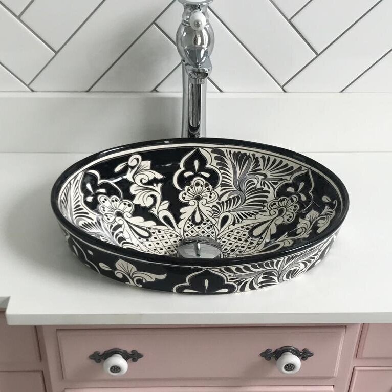 HAND-PAINTED CERAMIC OVAL SEMI-INSET BASIN